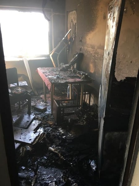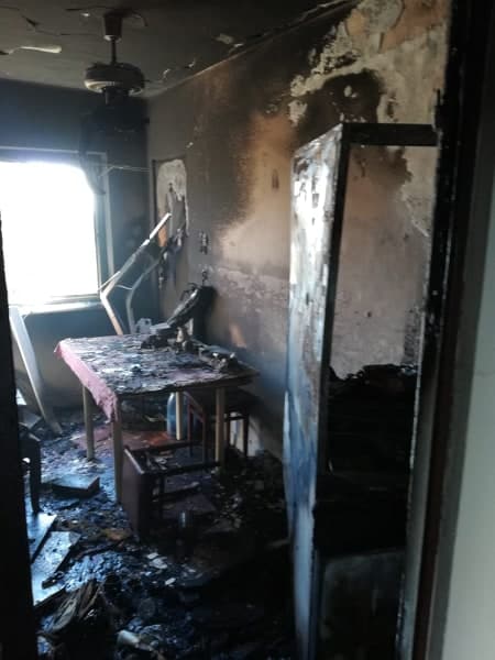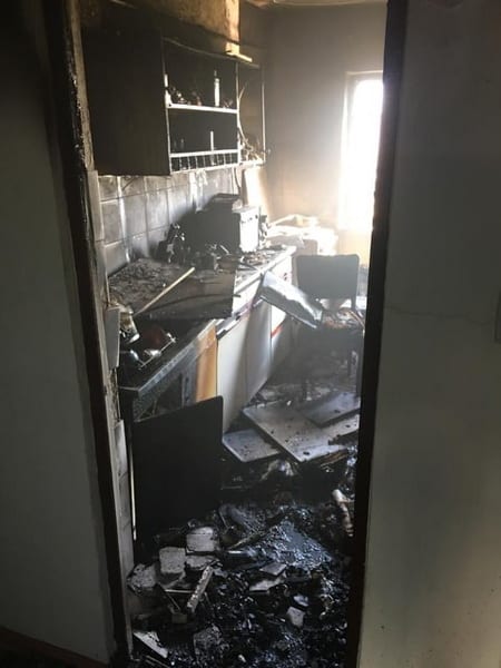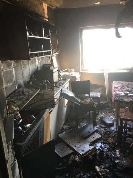 În urma incendiului mobilierul din bucătărie a ars, iar holul și celelalte camera au fost degradate de fum.