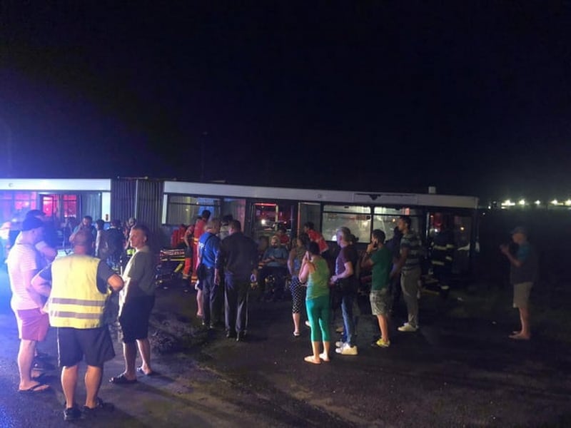 Zece persoane aflate într-un autobuz au fost rănite, în noaptea de joi spre vineri, pe centura rutieră a municipiului Arad, în urma unei coliziuni cu un TIR, victimele fiind muncitori care plecau acasă de la o fabrică din zonă.