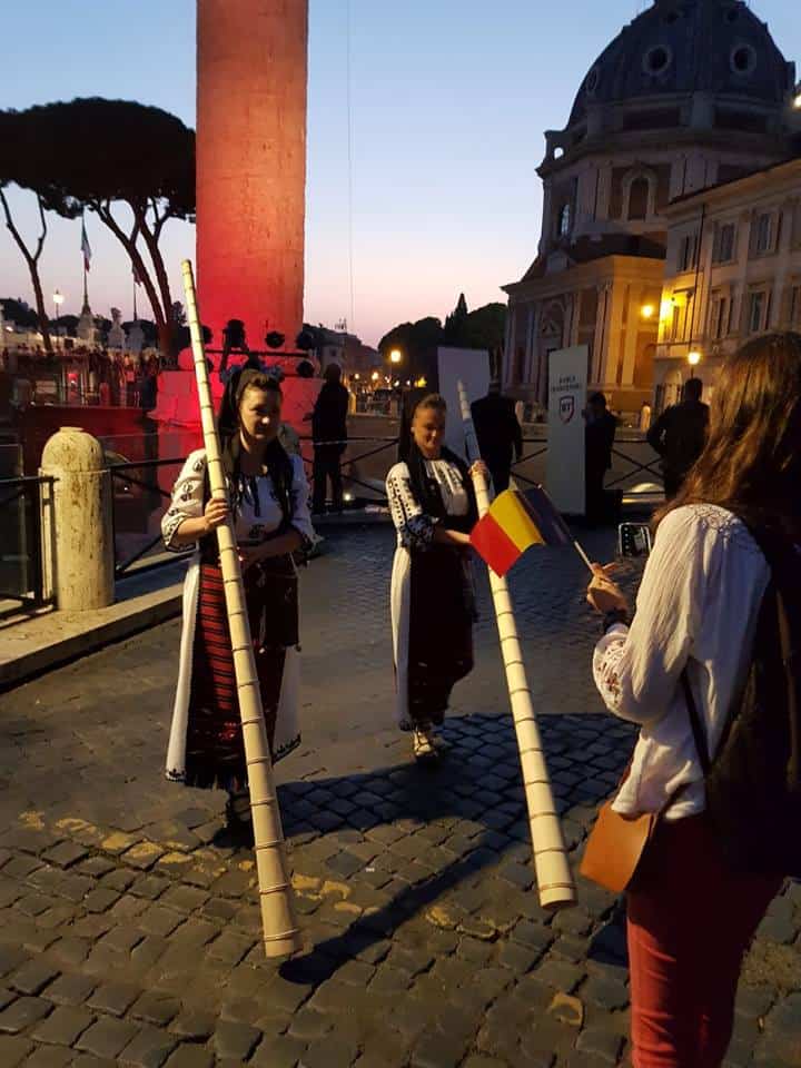Două tulnicărese din Munții Apuseni au susținut duminică, 14 octombrie, la Roma, un moment artistic special cu instrumentul tradițional specific Țării Moților. În cadrul evenimentului, Columna lui Traian a fost iluminată în culorile tricolorului României, iar tulnicăresele Crinela Narița și Geanina Onețiu au încântat prin semnale și chemări din tulnic pe cei prezenți, printre care s-a numărat și președintele Klaus Iohannis.